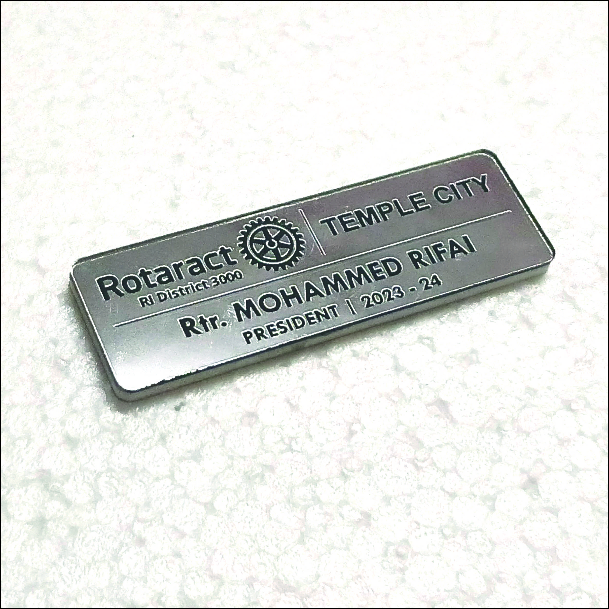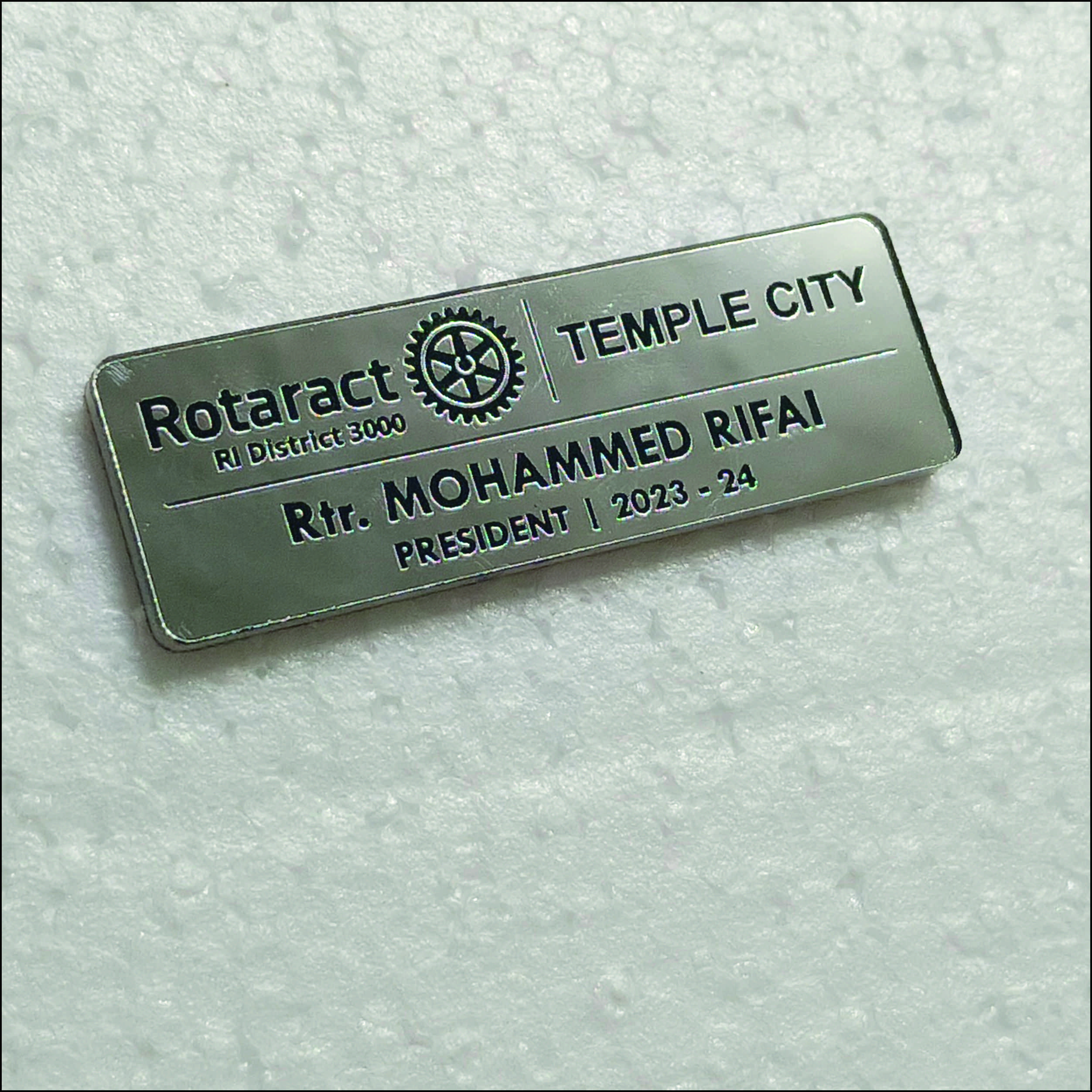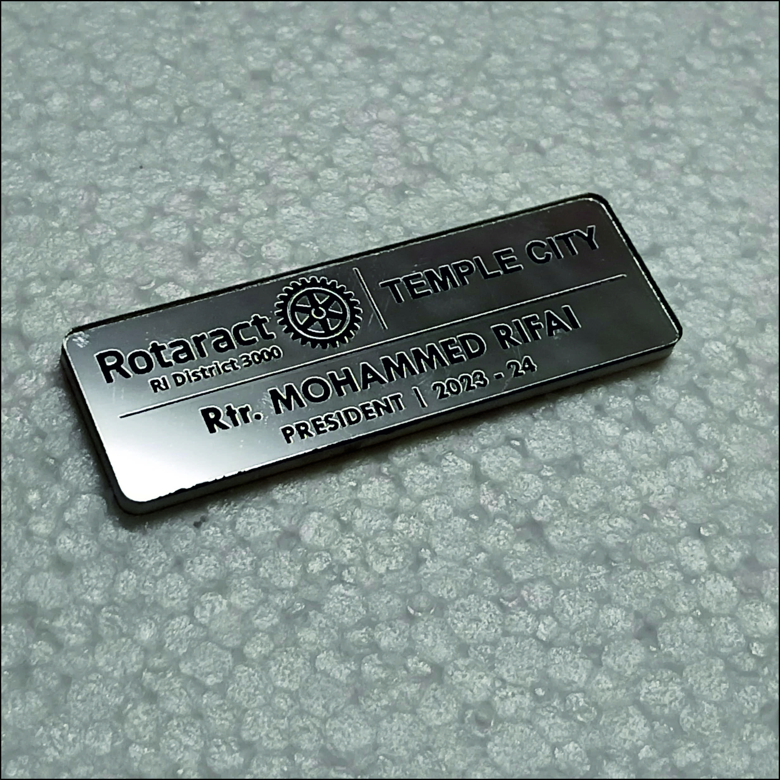 Acrylic Mirror Silver Engraving Badge